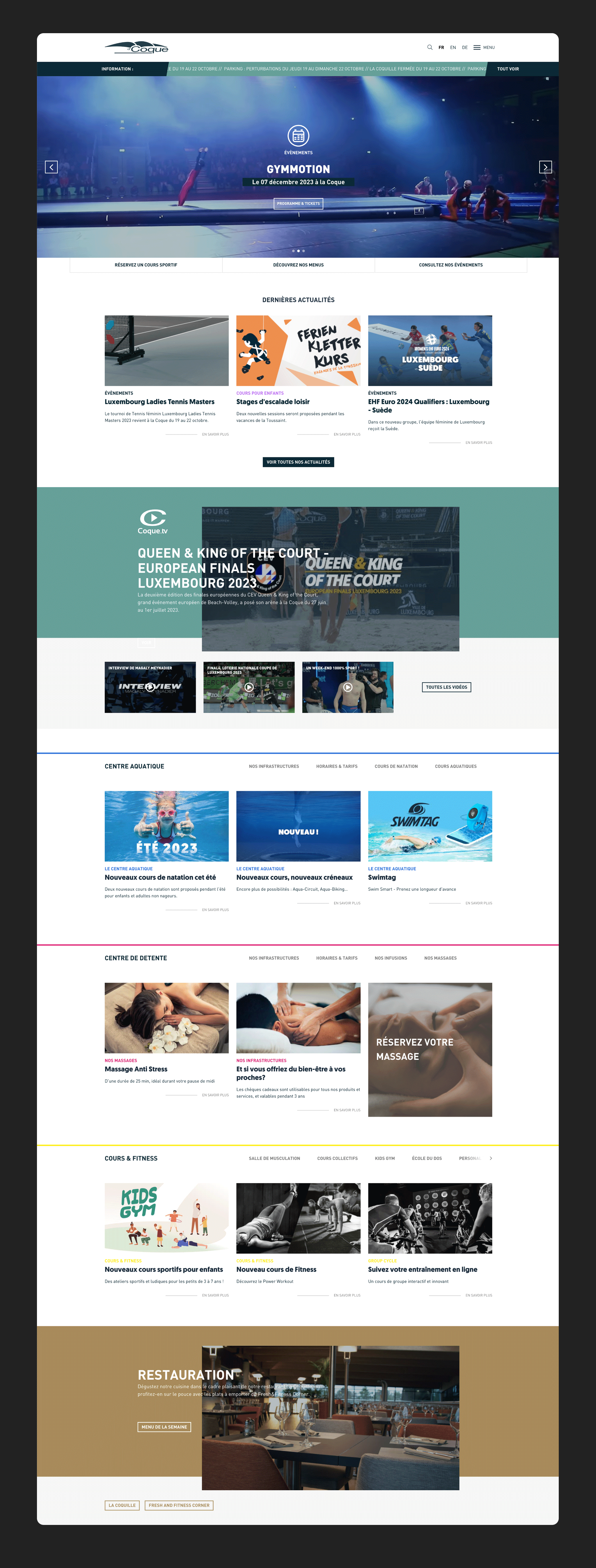 Afin de dynamiser et actualiser leur communication, d’Coque a demandé à notre agence de proposer une transformation digitale et d’établir une restructuration des contenus pour ainsi optimiser l’expérience utilisateur. Séparé en espaces thématiques, le site permet un accès rapide et facile aux différents services et multiples activités spécifiques ainsi qu’aux actualités liées. Il est intuitif et propose une double navigation en son menu « EXPLORE » ou « INDEX ».